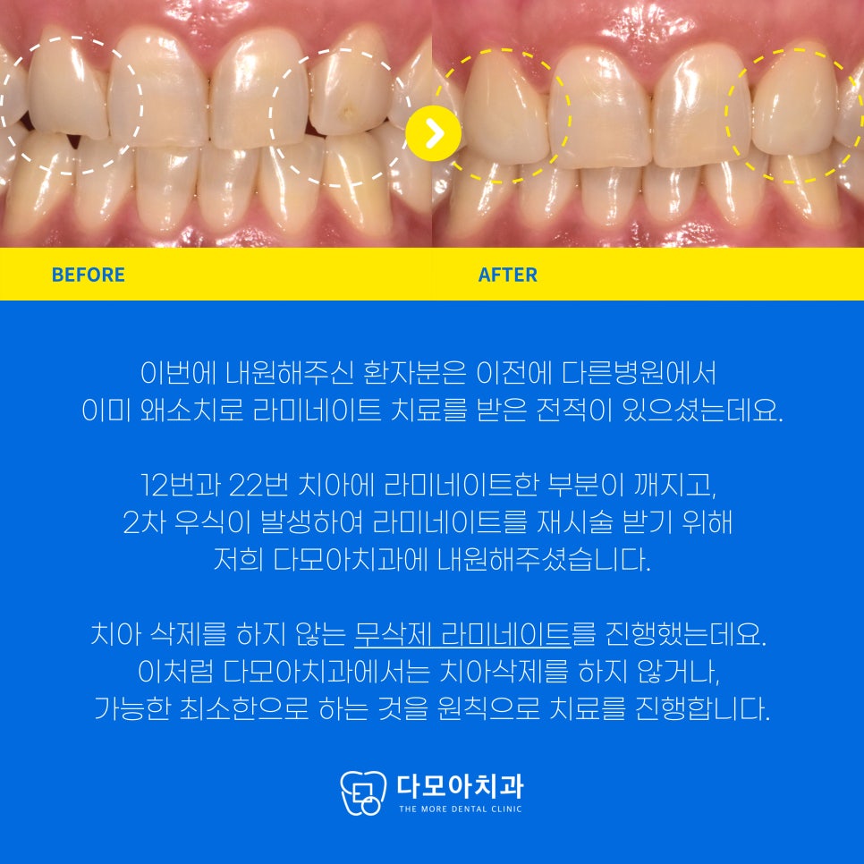 이처럼 다모아치과에서는 치아삭제를 하지 않거나,